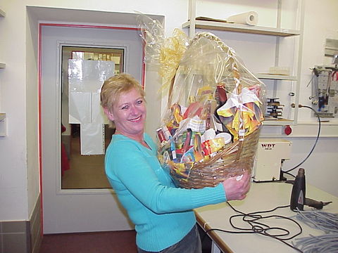 Am 27. November feierte unsere Mitarbeiterin in der Produktion am Standort Rustow, Frau Anette Schubert, ihren 50.Geburtstag. Sie ließ es sich natürlich nicht nehmen, gerade auch an diesem ganz besonderen Ereignis ihrer regulären Arbeitstätigkeit nachzugehen. Die Überraschung war dann jedoch groß, als die Kollegen und –innen ihr einen dekorativen Freßkorb überreichten.