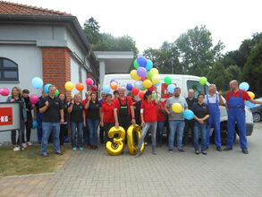 Aus diesem erfeulichen Anlass ließ die BKG in der Niederlassung Loitz / Rustow Ballons in den Himmel steigen. Die versammelte Mannschaft sang dabei im Chor das Lied "HAPPY Birthday".