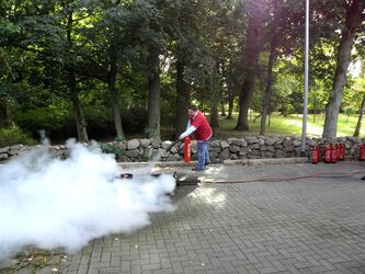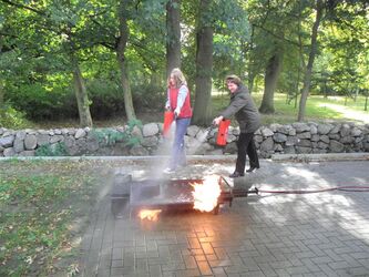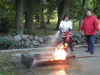 So konnte jeder noch einmal sein Wissen auffrischen und für den richtigen Ablauf im Brandfall sensibilisiert werden. Für einige war es das erste Mal und so waren die praktischen Übungen und anschaulichen Demonstrationen einer Fettexplosion oder einer explodierenden Sprayflasche ein besonderes Erlebnis.