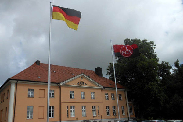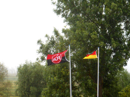 um uns herum. Daher haben wir es uns hier in der NL Loitz / Rustow auch nicht nehmen lassen – dem Ereignis entsprechend die Fahnen zu hissen: Neben den BECK-Fahnen am Eingang flattern nun auch die deutsche und die des glorreichen 1. FCN über die Peenelandschaft.