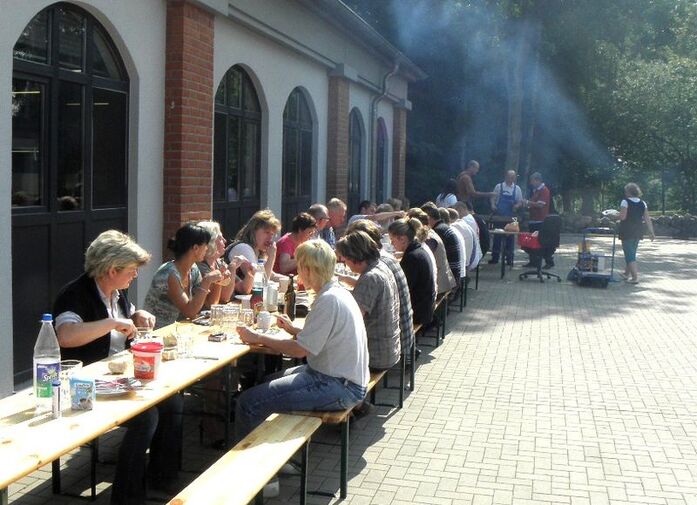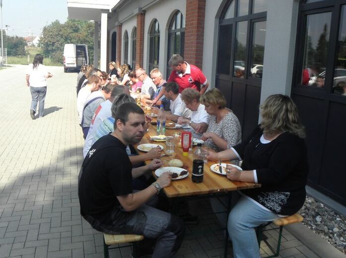 Die Herren Thorsten Witthuhn und Holger Franz versorgten des Mittags die gesamte Mannschaft mit leckeren Nackensteaks und Bratwürsten vom Grill: Wen wundert´s, dass dann nach der Mittagspause die Arbeit noch besser von Statten ging.