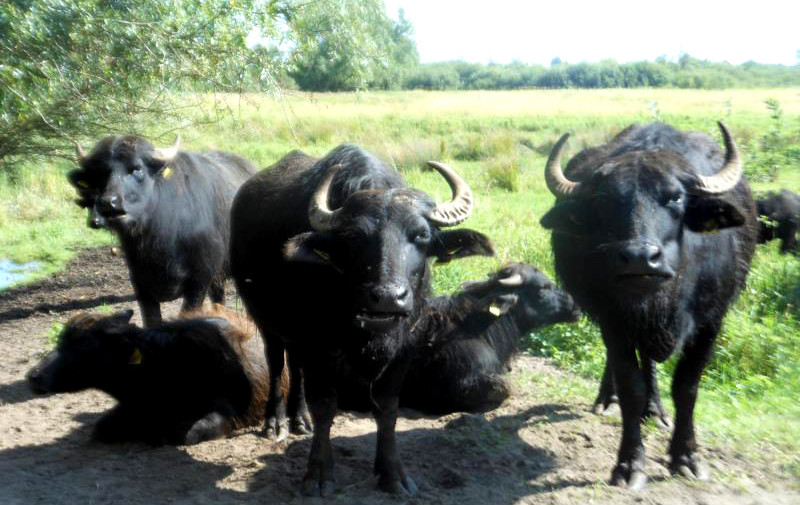 Die Wasserbüffel sind immer noch da und besuchen regelmäßig das Areal vor dem Gutshaus Rustow.