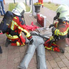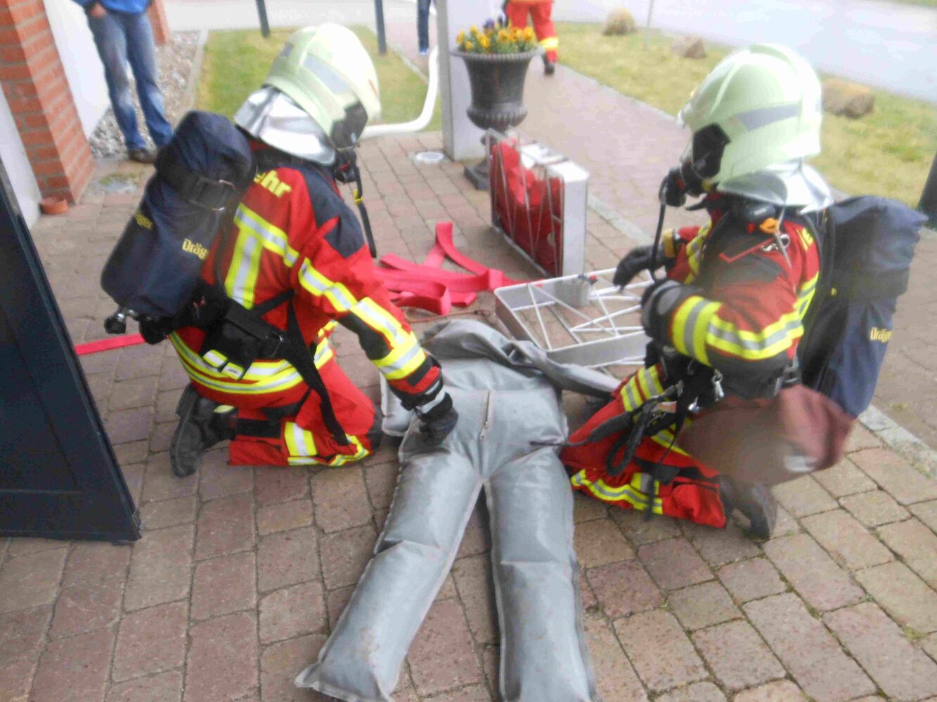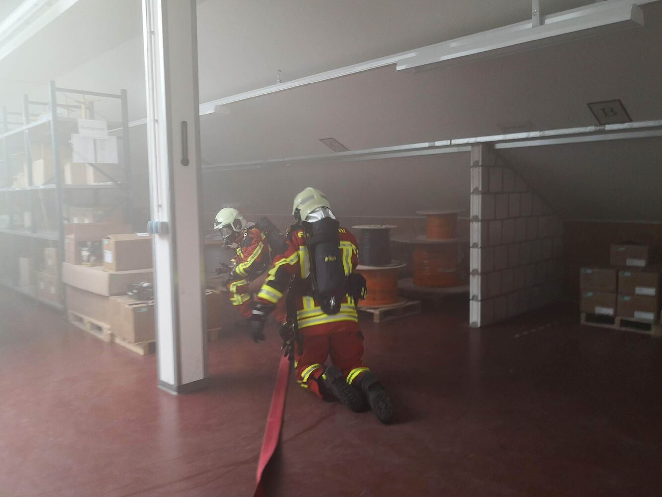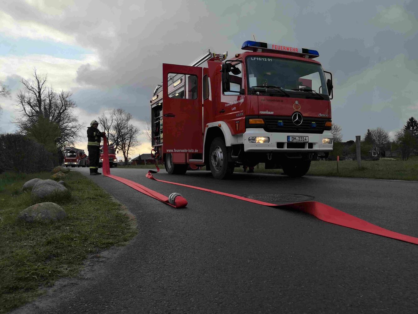 Ohne jegliche Vorankündigung wurde der Brandfall geprobt – Feuerwehrleute der FFW Loitz sind nach der Alarmmeldung zielgerichtet in der BKG Rustow eingelaufen. Da gab es dann einiges zu tun – das Produktionsgebäude war vollkommen eingenebelt und nun galt es sich da erst mal vorzukämpfen. Löschwasserschläuche mussten vom Löschteich in Rustow über eine beträchtliche Entfernung verlegt werden, um dem fingierten Brand Herr zu werden. Alle Kameradinnen und Kameraden der Feuerwehr waren im höchsten Einsatz und es hat prima funktioniert.