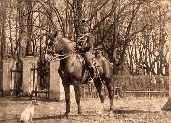Das Foto zeigt den vormaligen Eigentümer "stolz zu Ross" vor dem Eingangsportal zum Gutshaus – ein preußischer Offizier – wie es zu Buche steht.