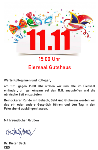 Aus diesem Anlaß haben wir am 11.11. einen Umtrunk im Eiersaal des Gutshauses Rustow veranstaltet. Neben leckerem Gebäck gab es Kaffee und Glühwein. Mit letzterem Getränk haben wir zugleich die Karnevalszeit gebührend eingeläutet.