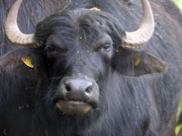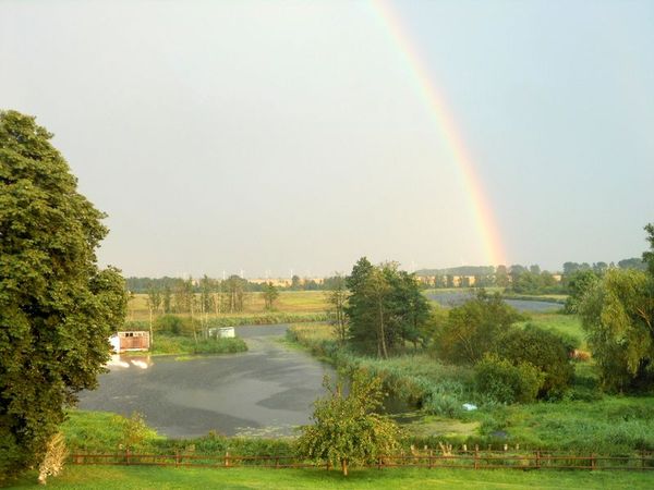 ... nunmehr kommt der Sommer auch hier in Vorpommern wieder an. Die Wasserbüffel sind hier wieder direkt im "Freien" vor dem Gutshaus Rustow – und noch dazu ein Regenbogen.