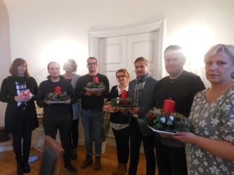 Um die Mittagszeit versammelten wir uns im "Eiersaal" des Gutshauses und stimmten uns bei Glühwein und weihnachtlichen Klängen auf die Feier ein. Die Geschäftsfürer Dr. Dieter Beck und Nikolas Loebenberger ließen in jeweils kurzen Ansprachen an die Belegschaft das Jahr 2019 Revue passieren und gaben Ausblicke auf die Ziele und Vorhaben für das neue Jahr 2020. Beide Chefs sprachen den Kollegen und Kolleginnen ihren Dank für den tatkräftigen Einsatz im ablaufenden Geschäftsjahr aus.